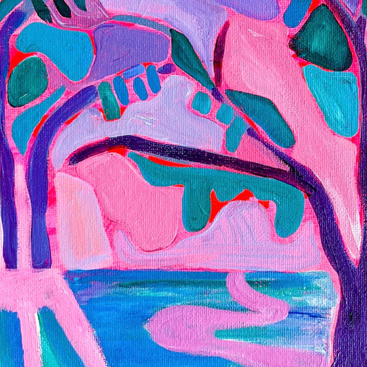 A collection of original acrylic paintings on canvas and cradled wood panel